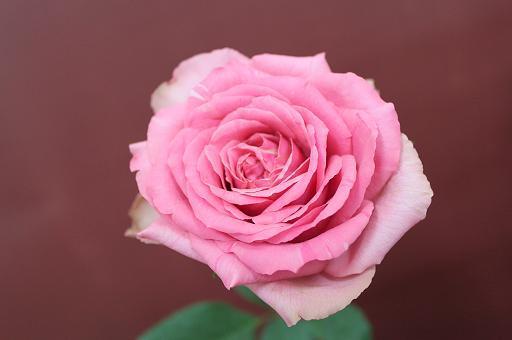 外側の花びらが茶色系のアンティーク調のピンクバラです。